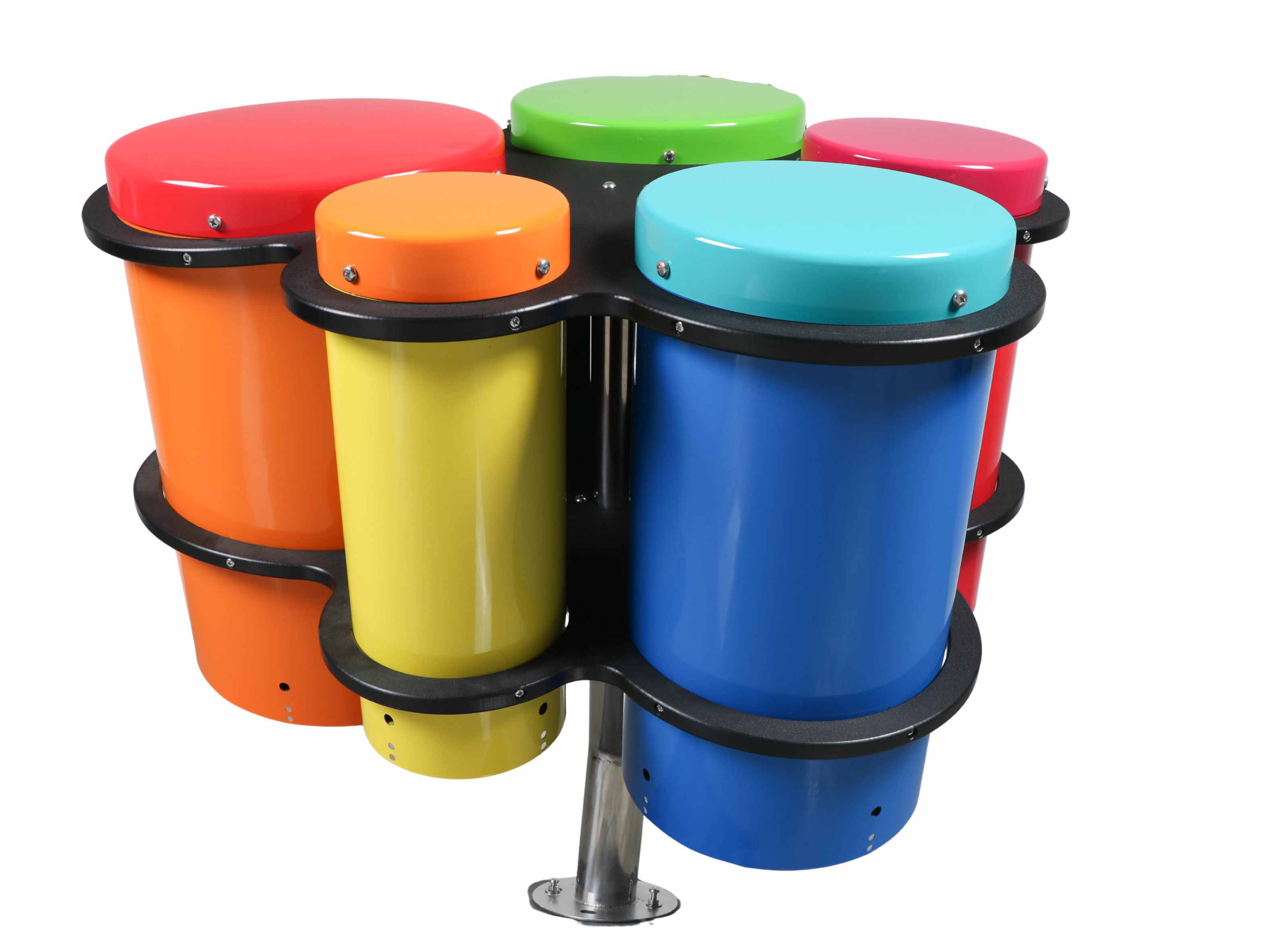 The Tuned Drums feature a distinctive Afro-Cuban influence similar to Congo Drums. The Tuned Drums feature a distinctive Afro-Cuban influence similar to Congo Drums. This set of five drums can be played by hand, creating deep resonating beats that inspire movement and dance.